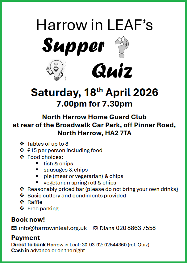 April 18th Harrow in LEAF's QUIZ NIGHT,